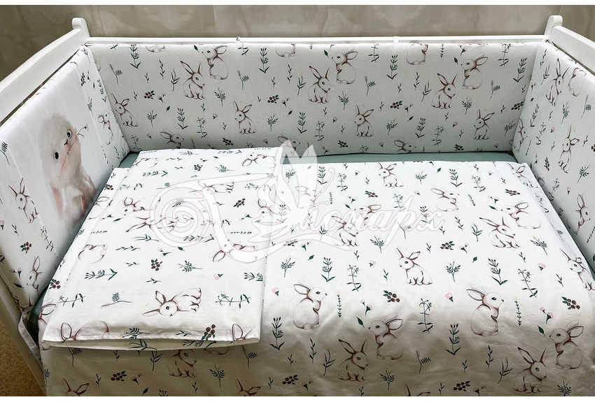 Бортики СО СЪЕМНЫМИ ЧЕХЛАМИ в кроватку: защитят Вашего малыша от ушибов, сквозняков, солнечных лучей и не дадут малышу запутаться в прутьях кроватки. - Простыня на резинке 60х120 см (подходит для стандартной кроватки)