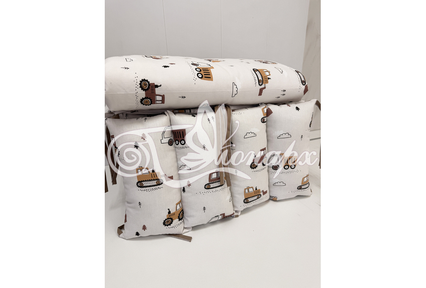 • Бортик-заборчик стеганый плотно забит синтепухом (на замочках): - 2 шт. 60х34 см / - 2 шт. 120х34 см.