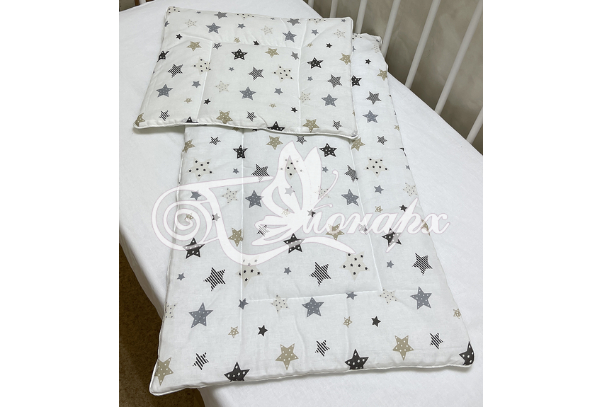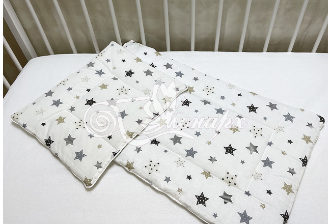 Каждое изделие из набора простегано, матрасик и подушка обработаны декоративным кантом.